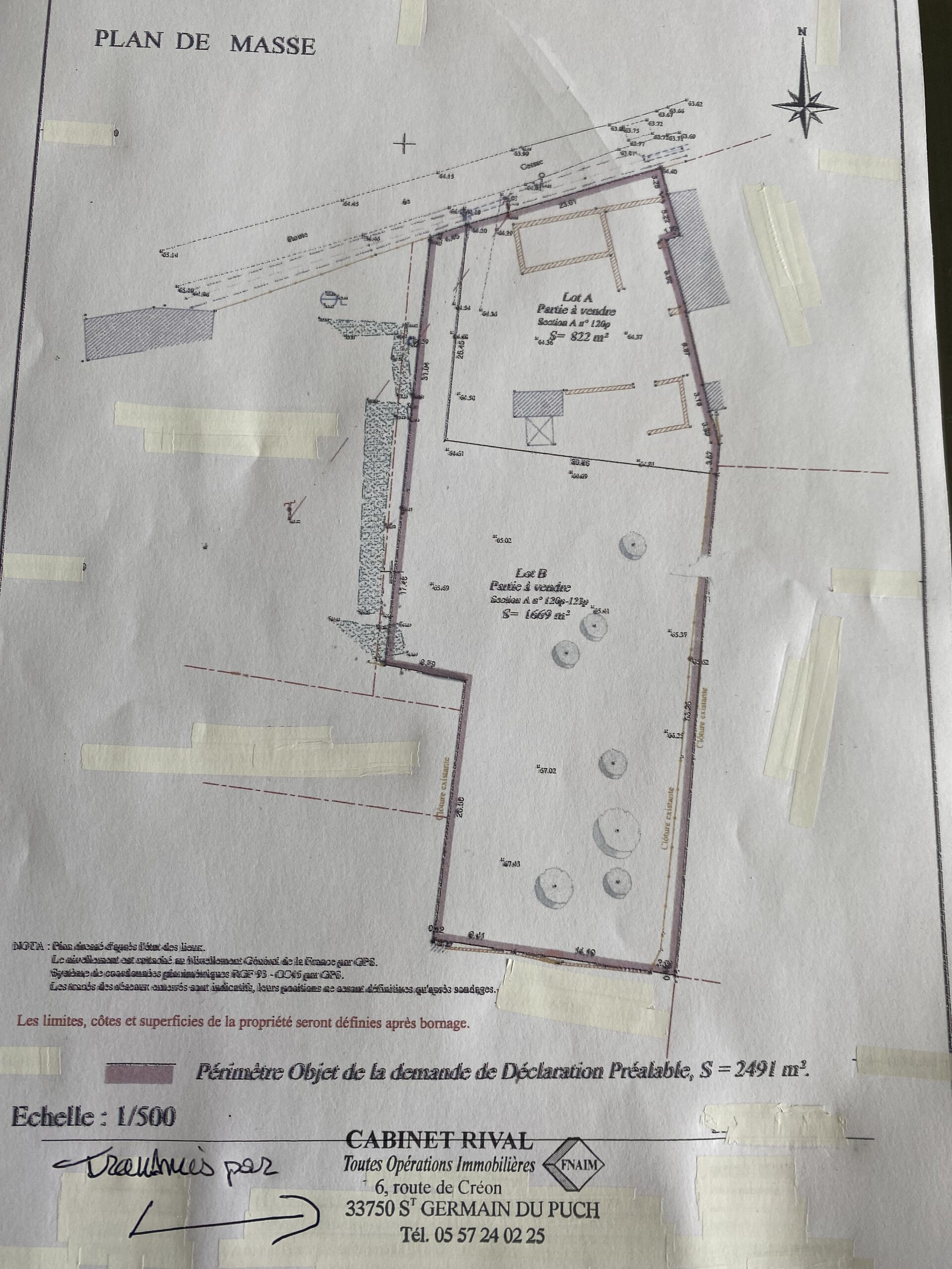 libre de tous constructeurs, terrain de 861 m2, plat, centre village de SAINT GERMAIN DU PUCH. 80% emprise au sol, R+1 autorisé, bouche du tout à l'égout en pla ...